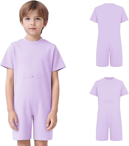 Adaptive Clothing for Kids Short Sleeve Jumpsuit Zip Back Tube Access Overall Anti-Strip Romper with Special Need Lavender 16 Years