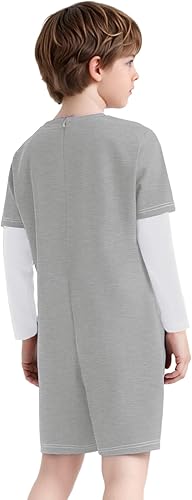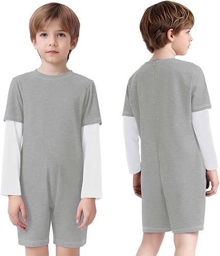 Adaptive Clothing for Kids Special Needs Autism Sensory Jumpsuit Long Sleeve Anti-Strip Romper Sizes 6-16 Years Gray White 16 Years