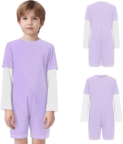 Adaptive Clothing for Kids Special Needs Autism Sensory Jumpsuit Long Sleeve Anti-Strip Romper Sizes 6-16 Years Lavender White 6 Years
