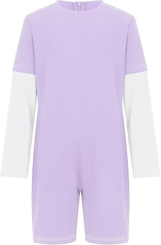 Adaptive Clothing for Kids Special Needs Autism Sensory Jumpsuit Long Sleeve Anti-Strip Romper Sizes 6-16 Years Lavender White 8 Years