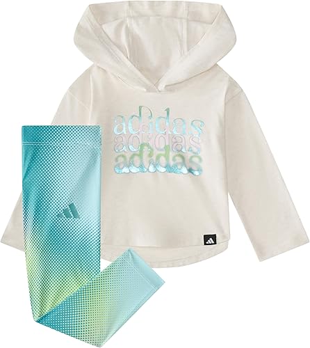 adidas girls 2-piece Long Sleeve Hooded Heather Tee & Printed Legging Set(Oatmeal Heather,6X)