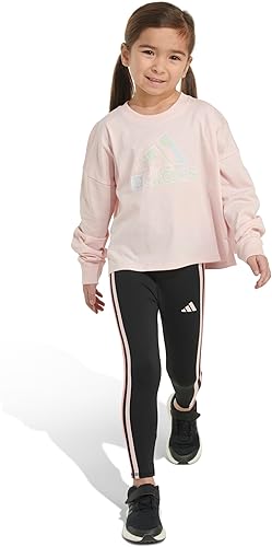 adidas Girls Long Sleeve Waist Crew Tee T-Shirt(Pink With Multicolor,3T)