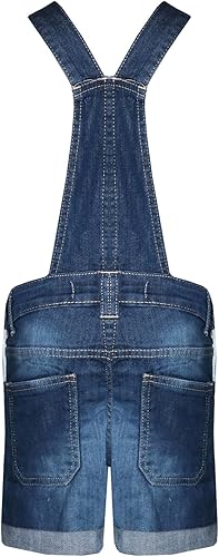 Ael New Girls Kids Denim Dungaree Outfit Shorts Dress Jumpsuit Party Size 7-14 Y(Dark Blue,7-8 Years)