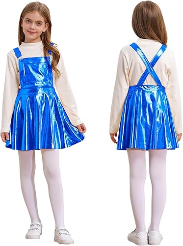 Aislor Kids Girls Sparkle Metallic Birthday Party Overall Dress Adjustable Suspender Skirt Flared Jumper Dress(Royal Blue,6 Years)