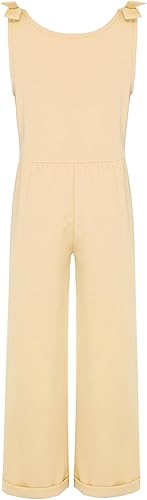 Aislor Kids Girls Wide Leg Jumpsuit Casual Sleeveless Bowknot Wide Shoulder Straps Romper Playsuit with Pockets Apricot 7-8 Years