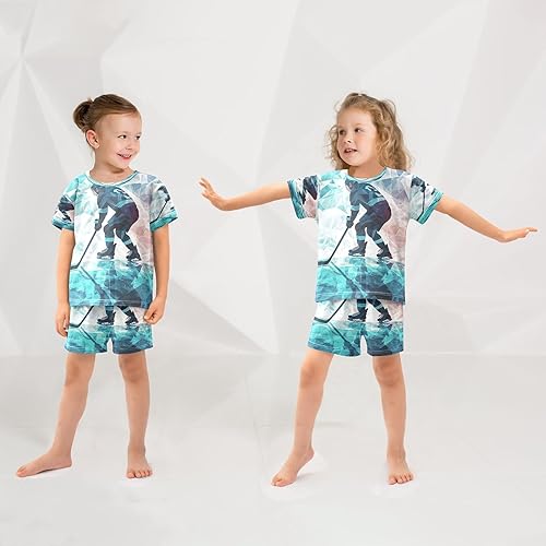 ALAZA Color Ice Hockey Player Pajamas Set Short Sleeve Cotton Sleepwear Summer Pjs 2 Piece 5-14Y(6 Years)