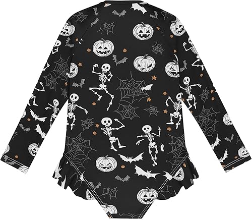 ALAZA Toddler Swimsuit Girl Bathing Suit Swimwear Rash Guard Halloween Skeleton Long Sleeve 3T(3T)