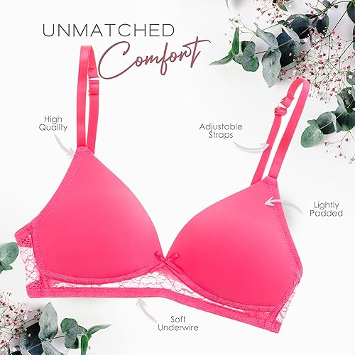 SUPER SOFT. SUPER STRETCHY. SUPER COMFORTABLE: This pack of cotton bras for girls is made from a premium, breathable blend of 95% Polyester and 5% Spandex to provide unmatched comfort to young and petite ladies. Dreamy soft to the touch, stretchy and breathable for all-year-round wear, these t-shirt bras will become your and your girls’ daily go-to choice.