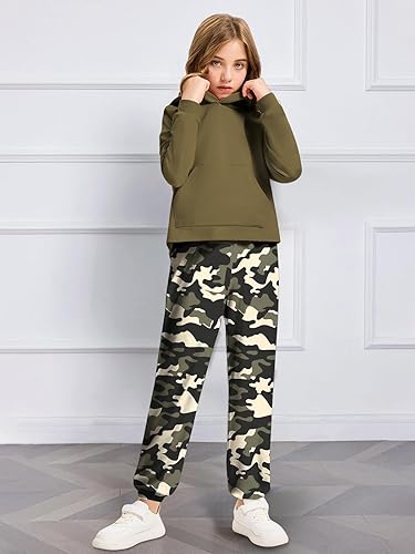 Features: Girls clothing sets includes hoodie and pants. Long sleeve drop shoulder hooded pullover sweatshirt, and matching camo baggy sweatpants girls/girls plaid pants, clothes for girls 10-12, which are also cute and leisurely
