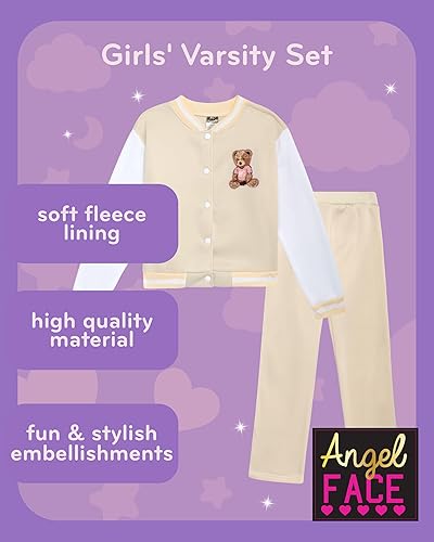Versatile Girls Pants Set for Everyday Style: This girls pants set includes a fleece varsity jacket and matching joggers for a sporty, coordinated look. Great for school, weekend plans, or casual lounging, this easy outfit fits right into any collection of girls outfits or girls two piece outfits. A great choice for building up girls activewear, this matching set balances style and ease for daily wear.