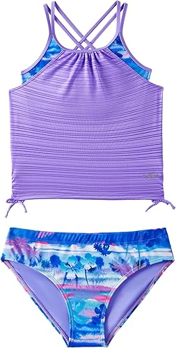 GIRLS BIKINI SET: Girls bikini set is made of Shell : 84% Polyester , 16% Elastane , Lining : 100% Polyester.. This style can be stretched in 4-way stretch. The fabric is lightweight, soft, breathable, skin friendly, quick to dry and comfortable. It is also added with sunscreen ingredients, UPF 50+ can be a good barrier against saltwater and UV rays. The swimsuit has perfect resistance to chlorine and salt water, high color retention, making it ideal for swimming.