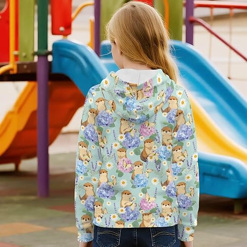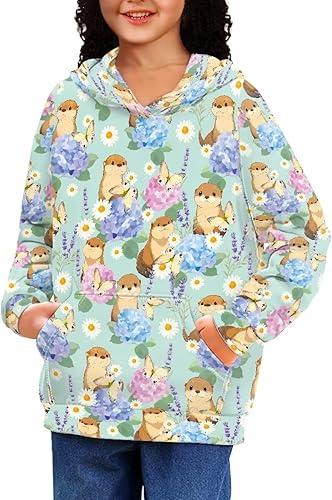 Animal Hoodie for Kids Ages 6-16 Girls Fall Outfits Fashion Sweatshirt with Pockets Stylish Animal Hoodie(Otter Flower,Large)