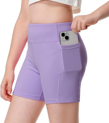 Girls dance shorts with 2 pockets: Girls shorts design 2 side pockets, which are deep enough to hold your phones or other essential, free your hands when doing sports.