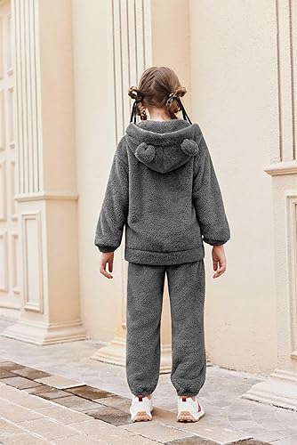 Versatile Outfit Set: Matching fuzzy hoodie and jogger-style pants; ideal for school, park strolls, holiday photos, and everyday wear in cold seasons.