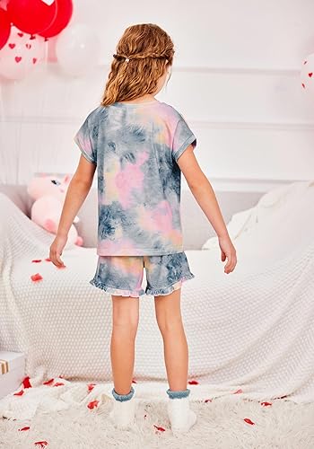【Skin-Friendly Material】 95%Polyester,5%Spandex, 2-piece girls tie dye pajamas set, extremely soft and skin-friendly, comfortable and breathable to wear, suitable for girl loungewear.