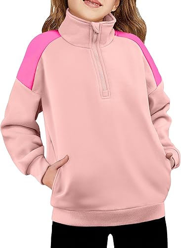 Material: Girls half zip sweatshirt is made of high quality fabric. Super soft and skin friendly, with soft fleece lining, keep you cozy and warm throughout the day in spring, fall and winter. Girls sweatshirt is available in 13 colours.
