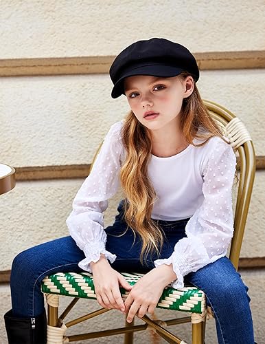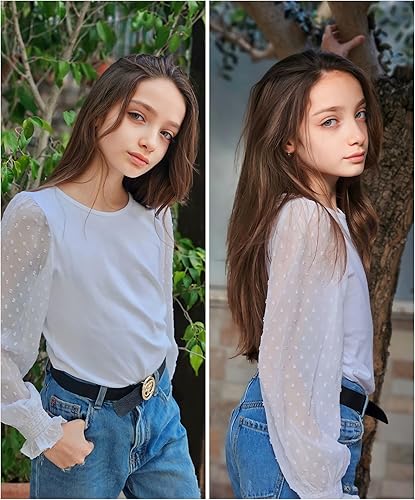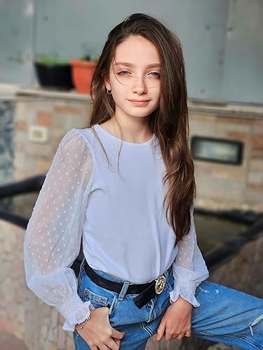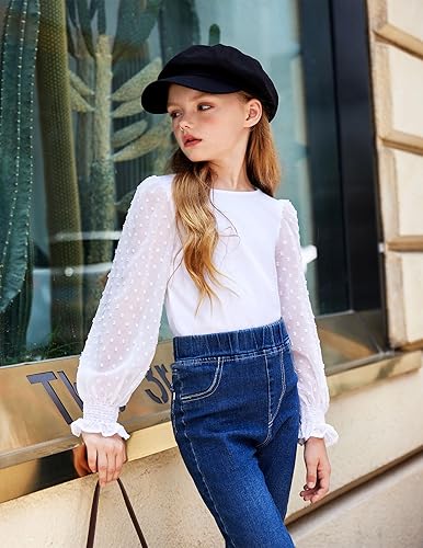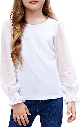 Design - Casual style,Cute ruffle smocked cuffs, Polka swiss dots,Lantern Bishop Sleeve,Solid color,Crewneck,Make girls' tops loose, comfortable and fashionable.