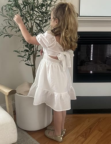 Lovely Dress for Girls: Casual and Fashion Swing Dress for your girls. Suqre neck, Off Shoulder, Tie back, Ruffle hem, A-Line, Elastic waist, Classic Solid Color, Above Knees Length.