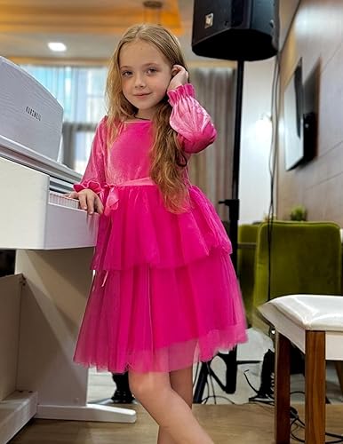 Design Point: This velvet tulle dress features a double-layered tulle skirt, classic crew neck, puff long sleeve, cute adjustable belt and knee-length, this dress ensures your princess can enjoy every moment without fuss