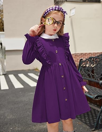 Features: Toddler girls cute midi dress features ruffled shoulder, long sleeve, decorative buttons at the front of the dress. Two side pockets are convenient to put some items.