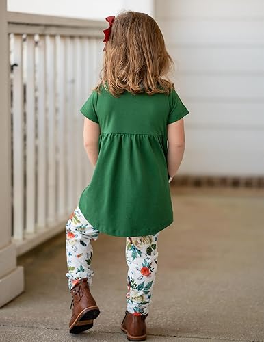 Design: High low shape tops,Rural floral style, wildflower print, ruffle detail and short sleeves. Leggings Pants have elastic waist for perfect fit. The trousers design prevents children from being bitten by mosquitoes!
