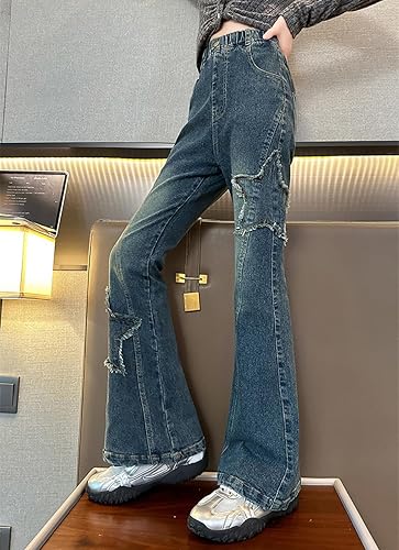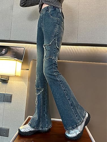 Material: Trendy star bell jeans for girls are durable and soft to wear. Fashion star patchwork pants offers a comfortable and stylish fit for every girls.