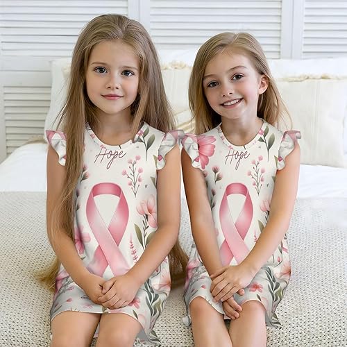 Augenstern Flutter Sleeve Nightgown Pajama Gown Breast-Cancer-Ribbon-Hope Easy Pull-On Sleepwear Nightdress(Small)