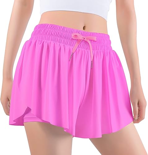 Flowy Shorts:2 in 1 soft and butterfly shorts will not see-through due to the built-in shorts. Made of extremely soft, lightweight, breathable fabrics.Wicks sweat and Quick dry features to keep you fresh.