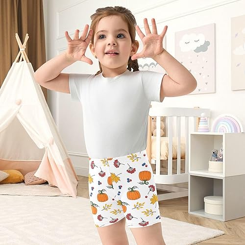 Autumn Pumpkin White Girls Bike Shorts Toddler Soft Cotton Cartwheel Under Dress Dance Shorts(Multi-autumn Pumpkin White,10 Years)