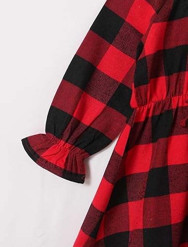 WELL-DESIGNED: This is a fashion long puff sleeves Red black white green Plaid christmas Fall Winter mommy and me dresses, pretty Green Red White Black Buffalo Plaid matching dresses for mother and daughters christmas Holiday, Classic long sleeve red velvet Mommy and me velvet dresses matching set, green plaid mother daughter dresses matching set, Red Black Buffalo Plaid mother daughter matching outfits to wear in fall Christmas theme, with a bowknot decor at front makes you more graceful.