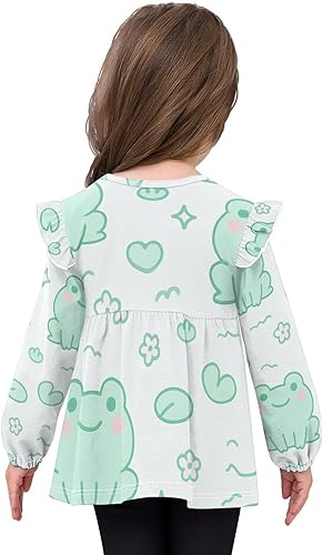 Comfortable Fabric: 95% cotton, 5% spandex Long Sleeve Ruffle T-Shirt, moisture-absorbing and skin-friendly. Doesn't fade after washes, reduces replacement frequency, fit girls'play and exploration.