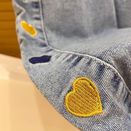 Baby Girls Cute Baggy Jeans Elastic Waist Denim Pants Fashion Wide Leg Jean Casual Loose Fit Trousers with Pockets(Yellow,12-18 Months)