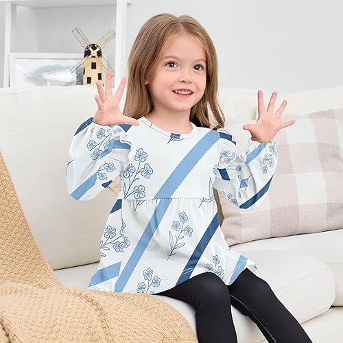 Quality Fabric: 95% cotton, 5% spandex Long Sleeve Ruffle T-Shirt, soft and skin-friendly, moisture-absorbing. Resists fading after washes, solves frequent replacement issue, great for active girls'play.