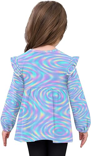 Cute Design: Ruffled sleeves, layered skirt, A-shape Baby girls Long Sleeve Shirts enhances cuteness. Avoids plain looks, matches pants/skirts easily, great for school events and outdoor adventures.