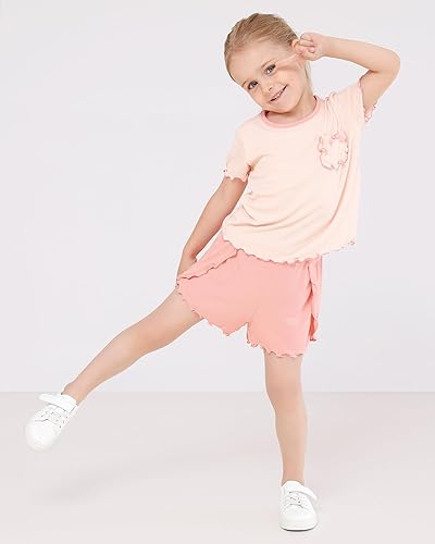 Breathable & Soft:95% Viscose made from Bamboo, 5% Spandex.Baby short outfits are soft for your child's skin. It ensures your baby will stay comfortable all day and night.Summer shirts shorts set for baby girls.