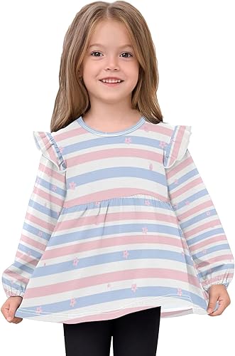 Many Occasions: Baby girls Ruffle Cuffs T-Shirts, outings, Christmas and school. No need for multiple clothes solves matching issues, suitable for casual and special times.