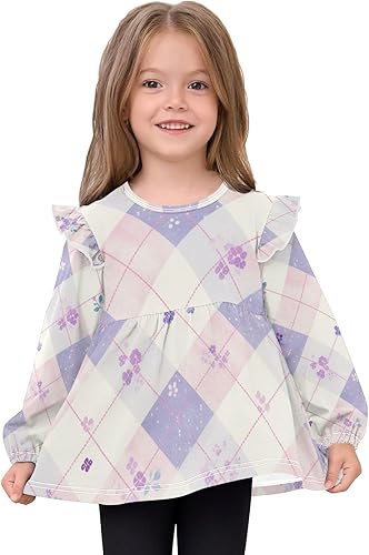 Soft Fabric: 95% cotton, 5% spandex Long Sleeve Ruffle T-Shirt, gentle on kids'skin. Maintains good condition after washes, reduces re-purchase times, fit active girls'daily exploration.