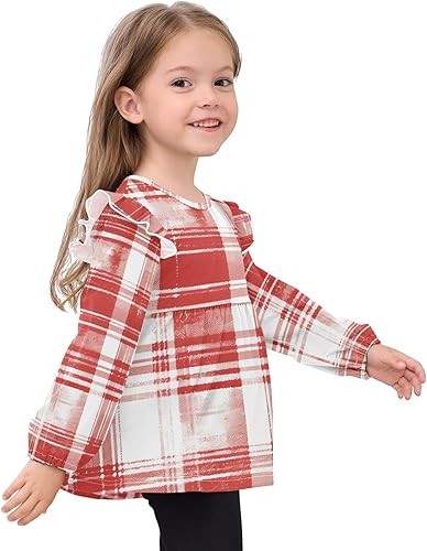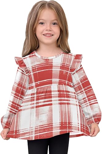 Many Occasions: Baby girls Ruffle Sleeves Blouse T-Shirts, outings, Christmas and school. No need for multiple clothes solves matching issues, suitable for casual and special times.