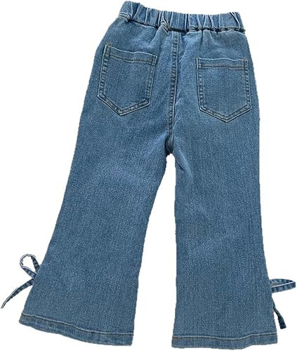 Baggy Bow Jeans for Girls Wide Leg Straight Elastic Waisted Denim Jeans Kids Casual Cute Y2k Streetwear Denim Pants(Blue,18-24 Months)