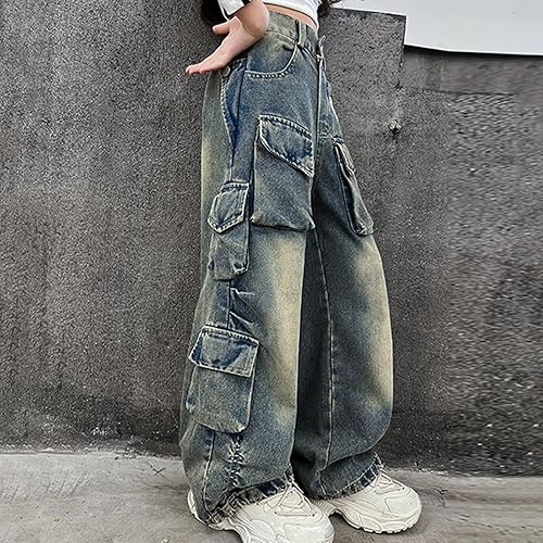 Design: Features utilitarian cargo jeans for girls with multiple pockets, blending baggy jeans y2k aesthetics and girls wide leg jeans silhouettes—perfect for baggy jeans for girls 10-12 and jeans for teen girls.