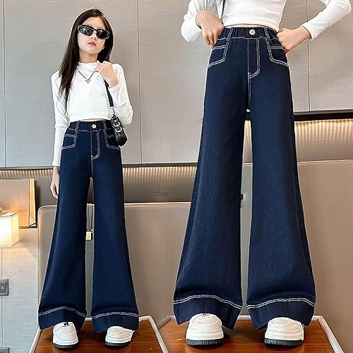 Stylish Y2K Flare Leg Design: Girls wide leg jeans crafted with a retro-inspired bell-bottom silhouette, these girls' jeans blend 2000s streetwear charm with modern comfort. The flared legs create playful movement while elastic waistband with button adjusters ensures easy wear. Perfect for creating trendy cool girl outfits that stand out in school or playground crowds