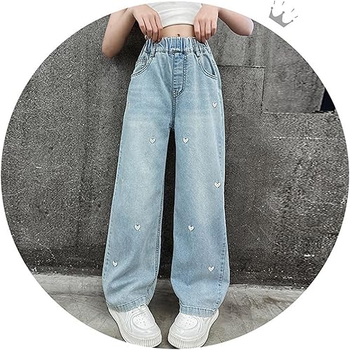 Features: Straight wide leg Jeans for teen girls kids 5-15 years, with diagonal pockets on front and back offer functional flair. High waist and with Elastic waistband expands for a perfect fit and easy to wear on or off. Make your girls look so cool and fashionable.