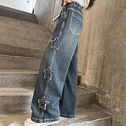 Baggy Jeans for Teen Girls Wide Leg Elastic High Waisted Hip Hop Denim Pants Trendy Aesthetic Bottoms Streetwear(Blue,11-12 Years)