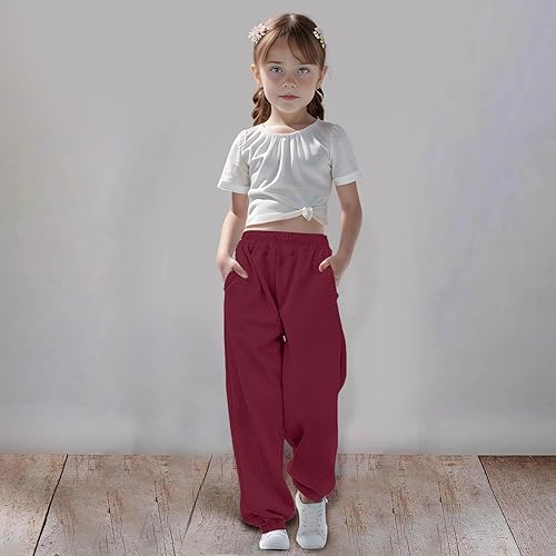 Adjustable Elastic Waistband: These girls jogger sweat pants feature a simple, casual design with a relaxed, baggy fit. The adjustable drawstring waistband ensures a secure and comfortable fit, easily accommodating various sizes and growing kids.