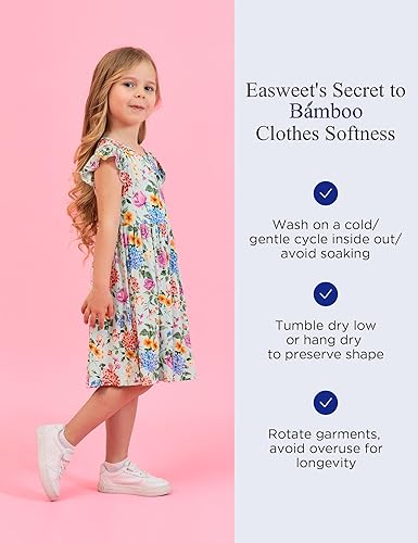 Cloud-Soft Bamboo Comfort: Gentle on sensitive skin to prevent irritation.OEKO-TEX Certified safety with finer bamboo viscose than regular bamboo. Ideal for all-day play comfort. The buttery-soft toddler girl dress for tender skin