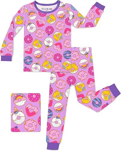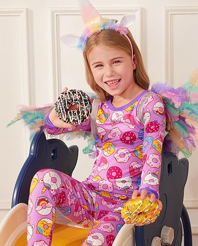 Bamboo Viscose Toddler Girls Kids Pajamas Unicorn Mermaid Pjs Long Sleeve Snug fit 12M-8Y 2pcs Soft Jammies(Unicorn Donuts,18-24 Months)