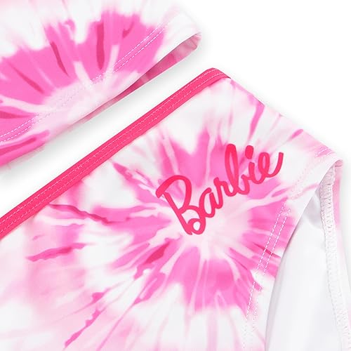 Fun And Fabulous Tie Dye Barbie Swimsuit: Dive into a world of fashion with this Barbie tankini two-piece set! Featuring a playful tie-dye design in shades of pink and white, it's the perfect splash of color for any Barbie fan's beach day.