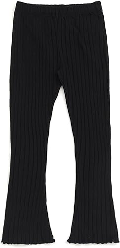 Rib knit crew neck collar; Elastic waist for comfortable stretch and a better fit; Stylish and fashionable tie knot design; Pull on closure; Fashionable lettuce edge trim; Wide leg flare; Soft ribbed knit fabric for a stylish textured look and comfy stretch; Awesome embroidery art; Trendy cropped design