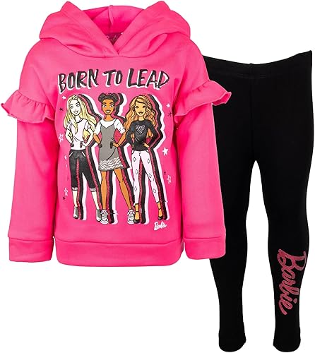 Officially licensed Barbie little girls long sleeve graphic hooded sweatshirt and leggings