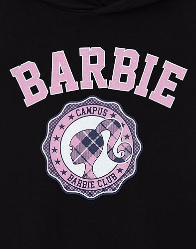 BARBIE CHECKED COLLEGIATE HOODIE: Elevate your little girl's style with our Black Hoodie featuring the trendy Checked Collegiate design by Barbie.